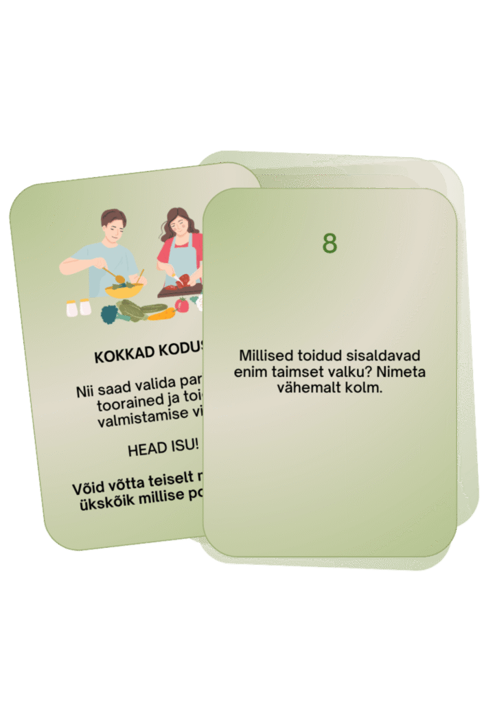 Just selleks lõime hariva ja lõbusa lauamängu “Toiduga sõbraks”, mis aitab lastel ja täiskasvanutel õppida teadlikke toitumisharjumusi mängulisel viisil. Mängides saad aru, kuidas väikesed muutused toidu valikutes loovad suuri muutusi tervises ja enesetundes.