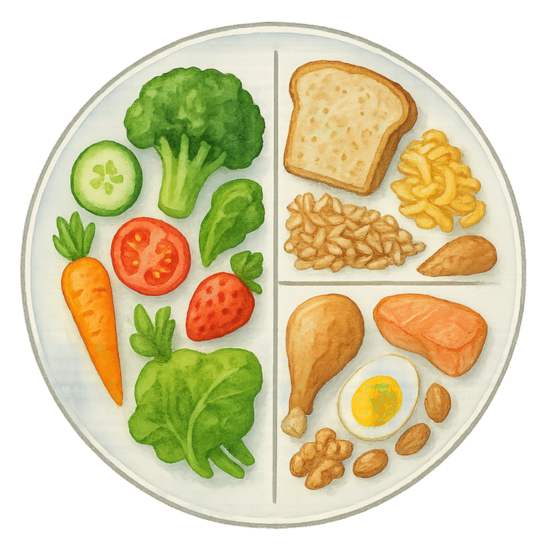 - 1/2 taldrik täidetud köögiviljadega – need sisaldavad rohkelt kiudaineid ja vähendavad veresuhkru tõusu, annavad rohkesti toitaineid ning antioksüdante.
