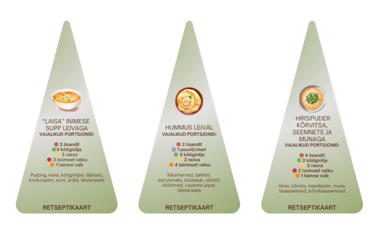 - 1/4 taldrik valguallikaga – liha, kala, munad, piimatooted või taimne valguallikas (kaunviljad, tofu, pähklid).